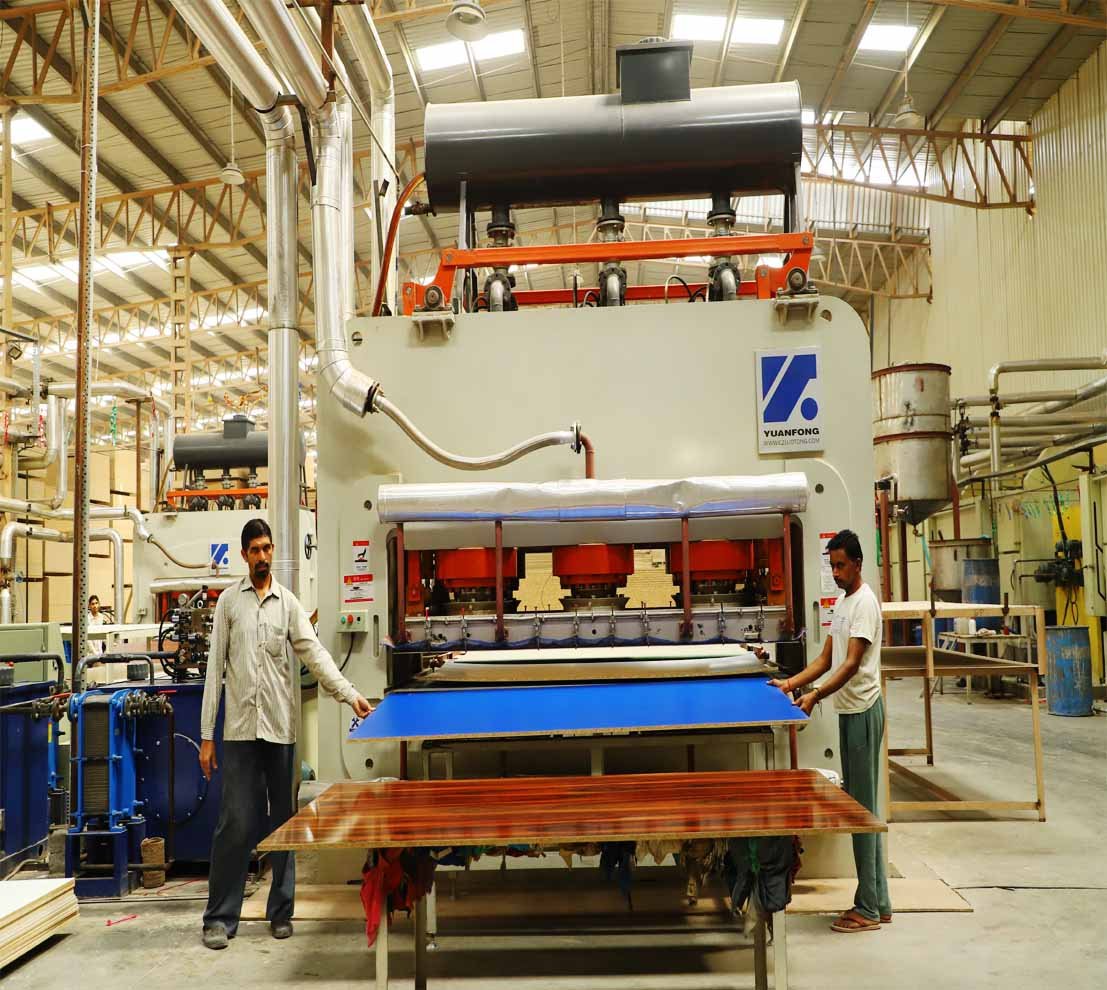In 1905, at a World's Fair in Portland, Oregon, the Portland Manufacturing Co. showcased wood panels laminated from a variety of softwoods from the Pacific Northwest. The product, called three-ply veneer work, was created using paint brushes to spread the glue and house jacks to press the pieces together. By 1907, the company installed an automatic glue spreader and sectional hand press to produce 420 panels a day.